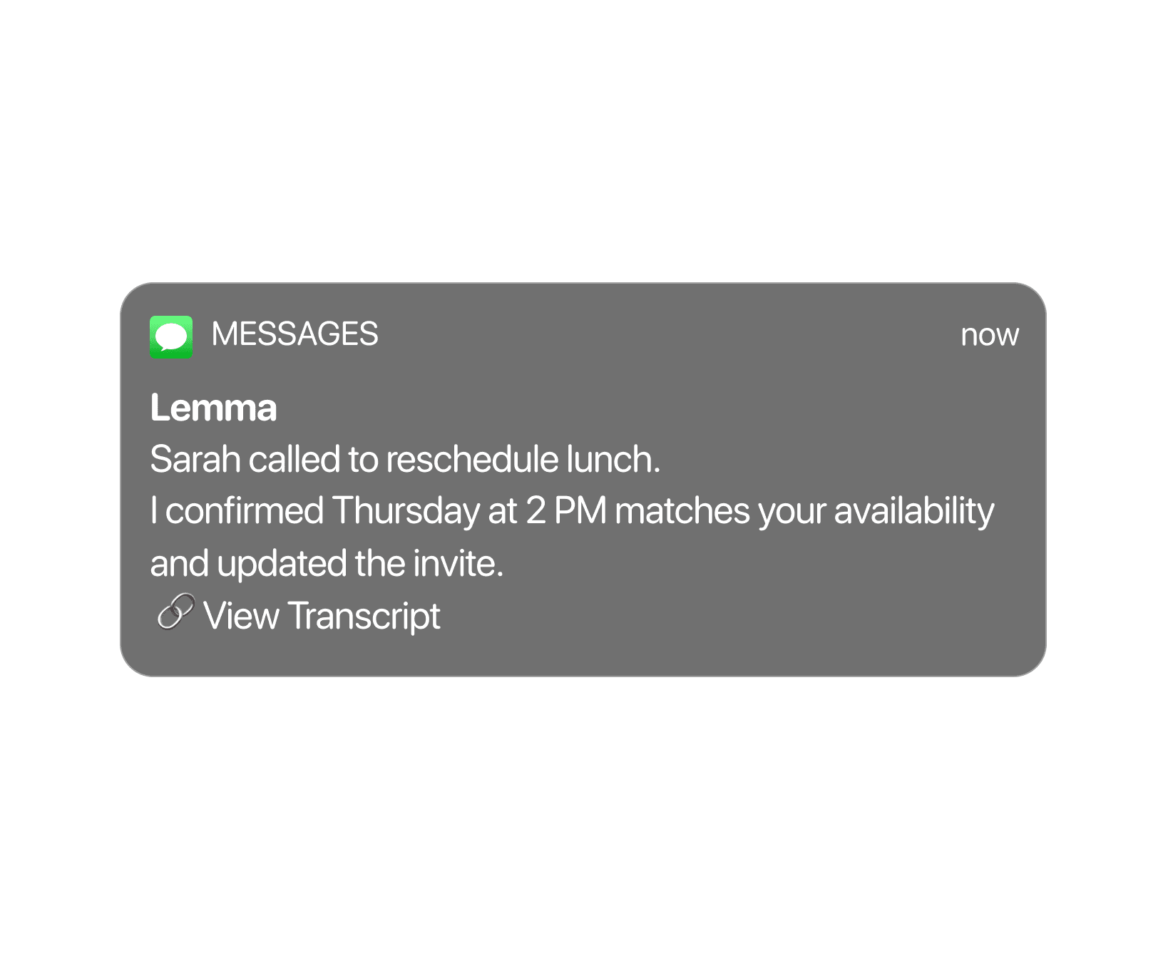 Your phone shouldn't just record problems; it should solve them. Lemma screens inbound calls, negotiates scheduling conflicts, and handles the back-and-forth — closing the loop even when you can't pick up.